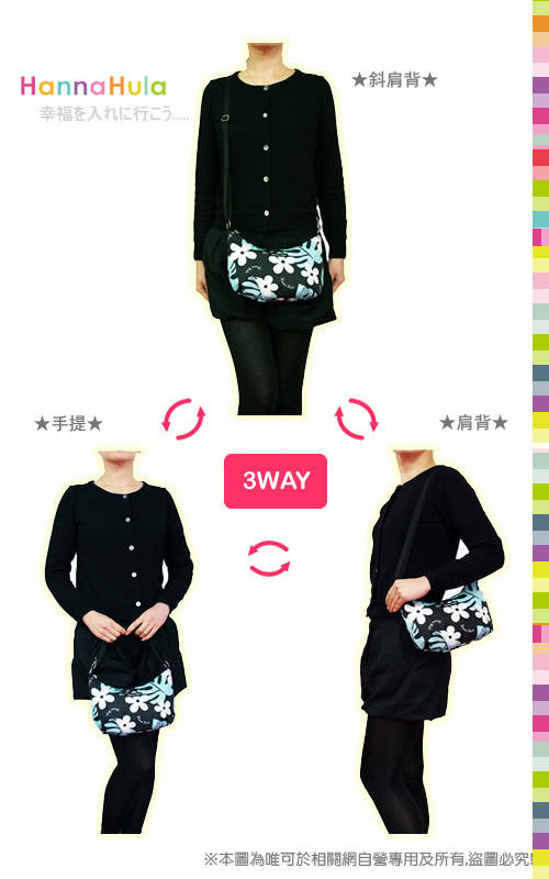 ,【日本Hanna Hula】輕量側肩包(花葉黑)本月獨享!